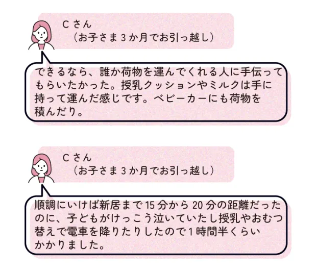 実際にお子さま連れでお引っ越しされた方のさまざまな体験談をご紹介しています☺