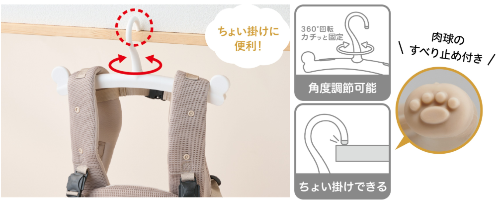 抱っこひもの置き場所に困っているご家庭や、ハンガーにかけていてもずり落ちるなど😓
