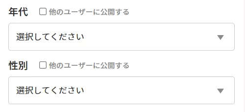 A アカウント設定時に、年代・性別の情報は、他のユーザーへの公開について設定が可能です。