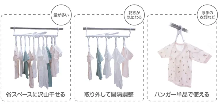赤ちゃんのお洋服を干すハンガー。