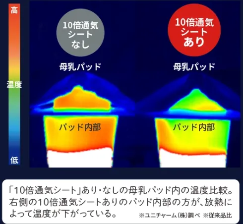 熱を逃して内側の温度を下げ、パット内のムレを防ぎます◎