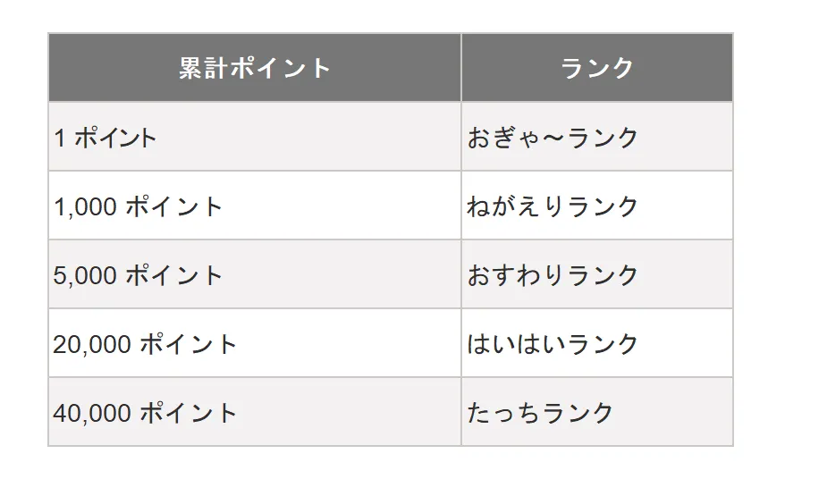 活動すればするほど、ポイントが貯まっていきます。累計のポイントに応じて、ランクが上がっていきます。